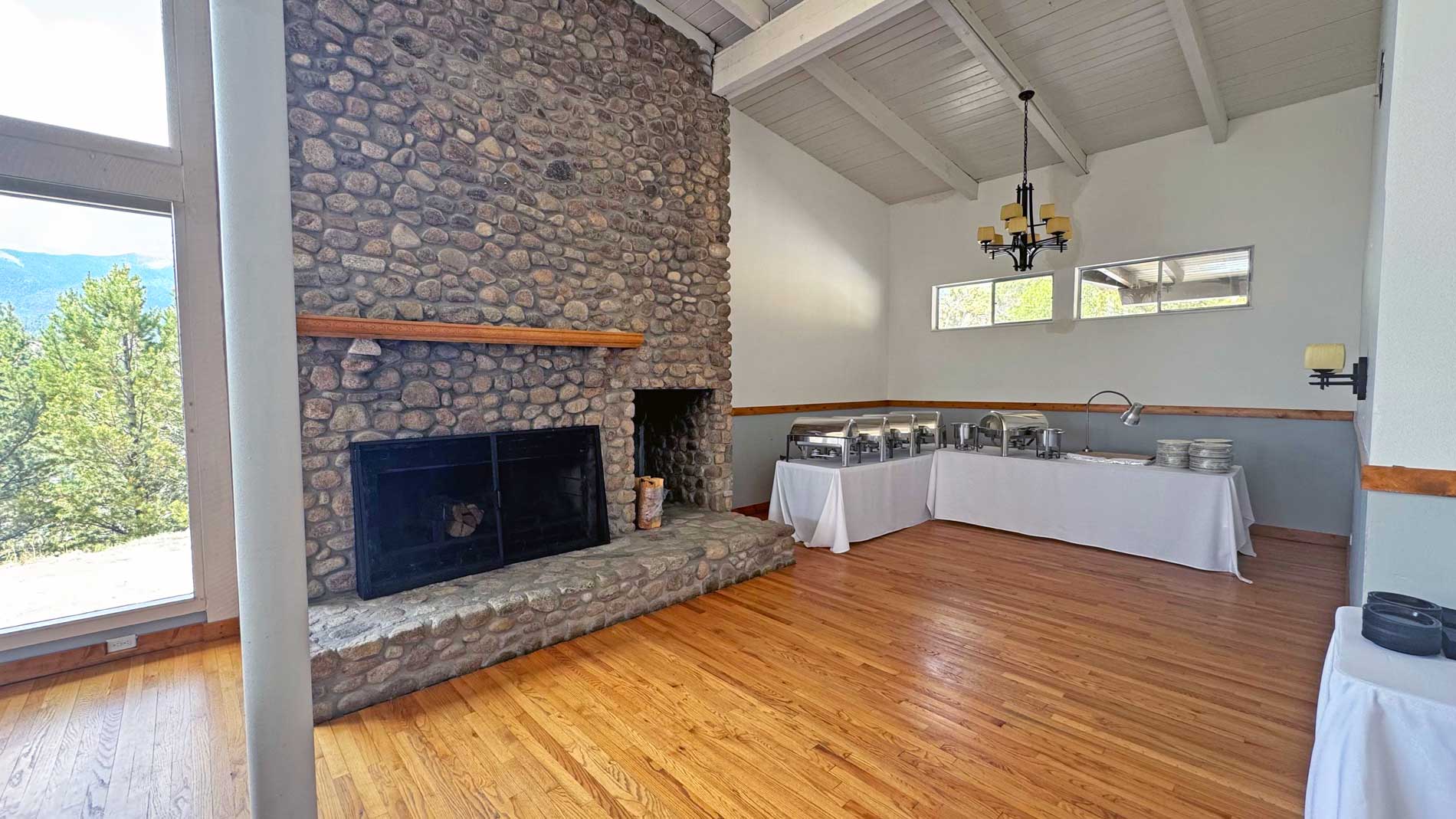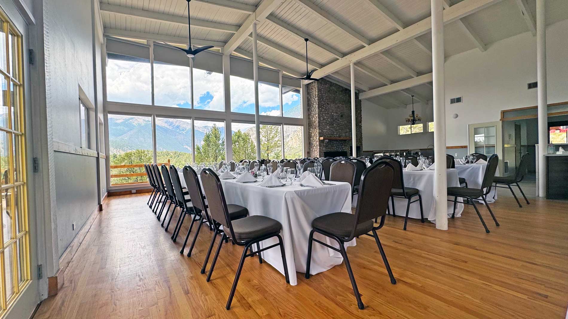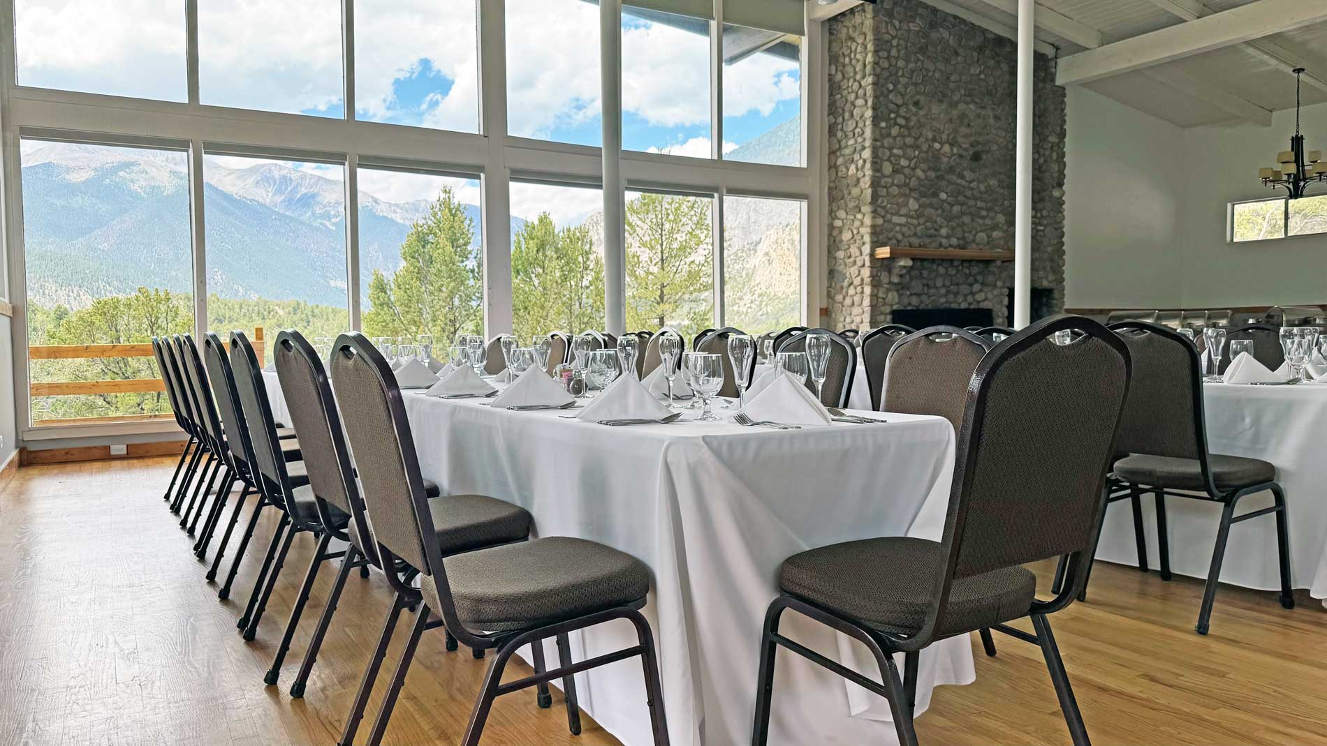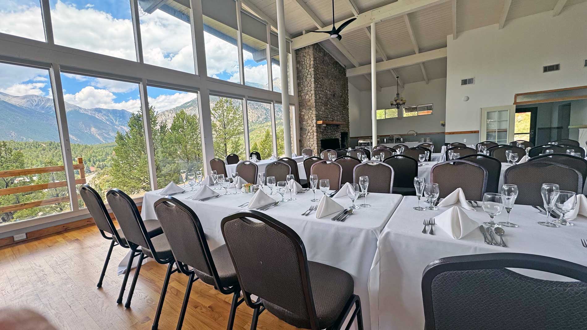 The Conference Center features mountain views, an oak dance floor, chandeliers and a stone fireplace to warm up chilly mountain evenings.