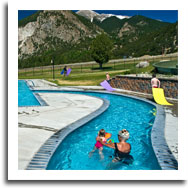 The Upper hot spring pools feature a 400 foot water slide. These pools offer incredible Rocky Mountain views and are kept at about 75 degrees Fahrenheit.